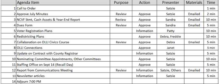 Sandra moved and Freddie seconded a motion for the LWVBC to co-sponsor OLLIâs four-part civics course. Motion passed unanimously.