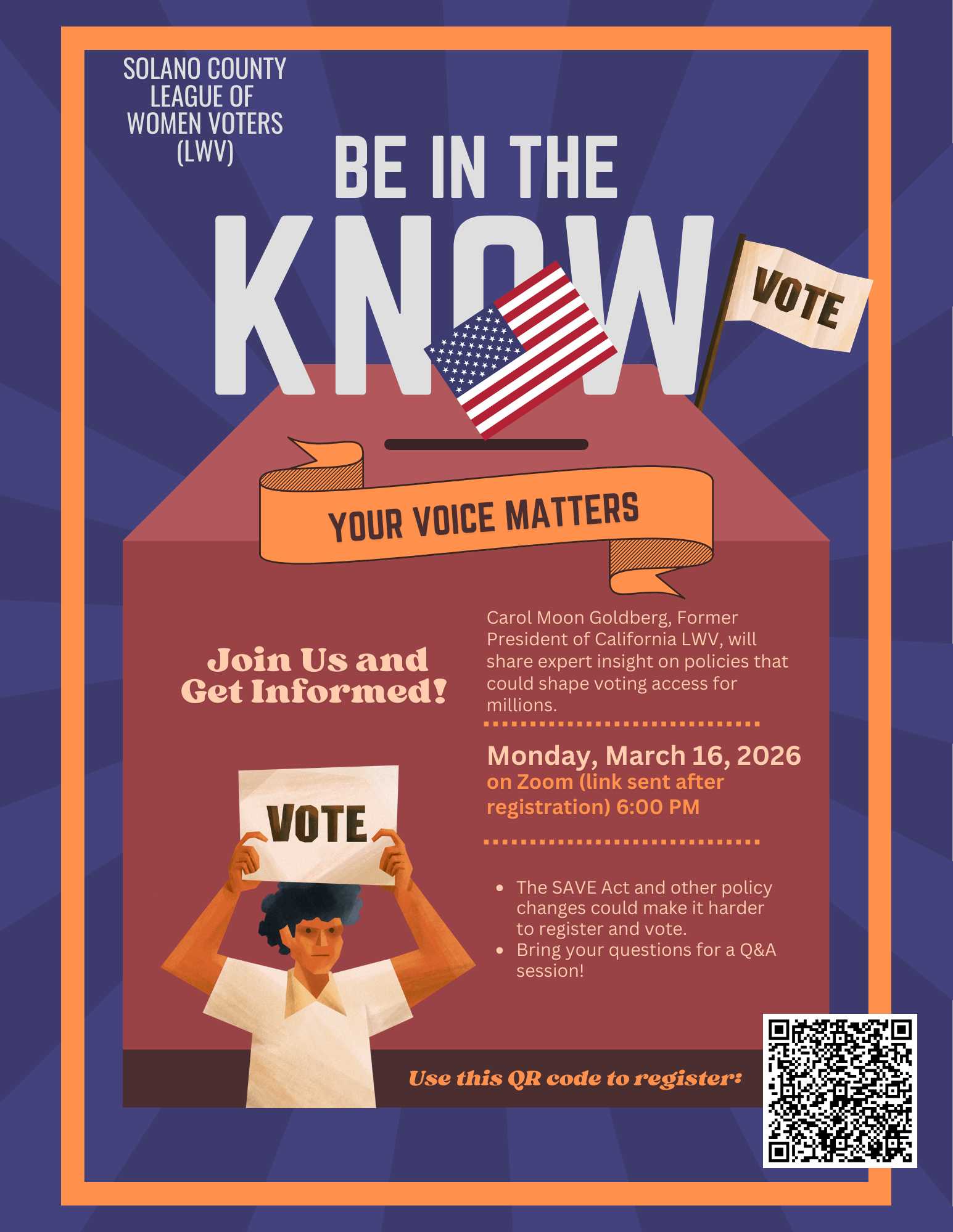 Be in the Know and learn about the SAVE Act and other proposed policy changes and legislation that may impact voting registration and voter access