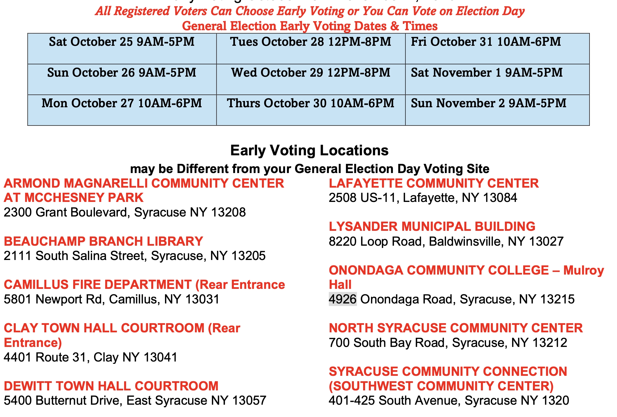 Click Here for Early Voting Sites & Onondaga County Candidate Information